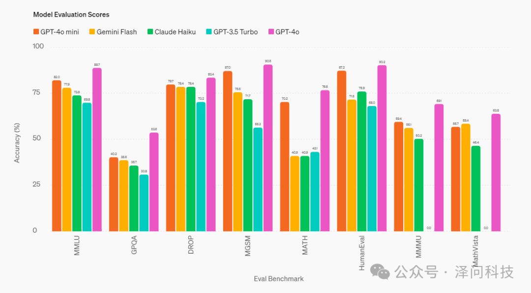 在各大基准测试中,GPT-4o mini遥遥领先于竞争对手。它在MMLU上的得分高达82%,Gemini Flash为77.9%。在数学推理和编程任务中更是展现出色实力,得分为87.0%。多模态推理测试中,GPT-4o mini也是高分拿下,体现了它的全能性。