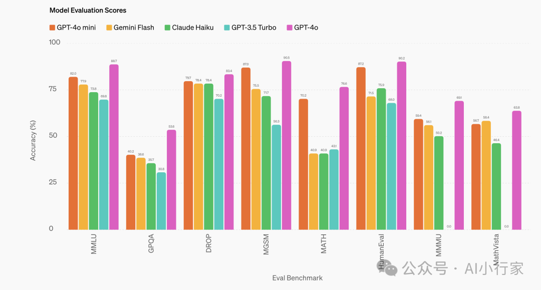 GPT-4o mini 在文本智能和多模态推理方面表现出色,超越了 GPT-3.5 Turbo 和其他小模型。无论是语言理解、数学推理还是编程任务,GPT-4o mini 都展现了卓越的能力。📊