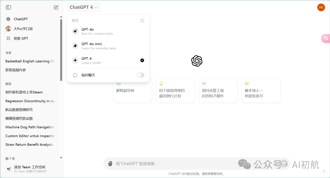 推荐使用GPT中文版,国内可直接访问:https://ai.gpt86.top