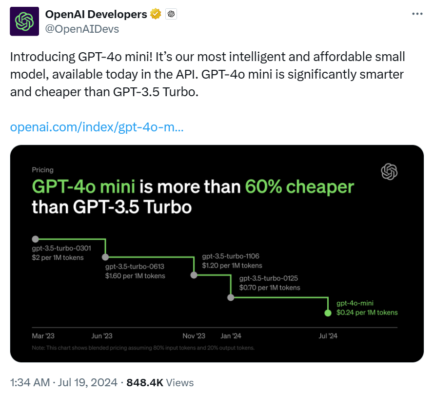 2024年7月18日,OpenAI推出其最具成本效益的模型GPT-4o mini,它有什么用?与GPT4-o比有啥不同呢?