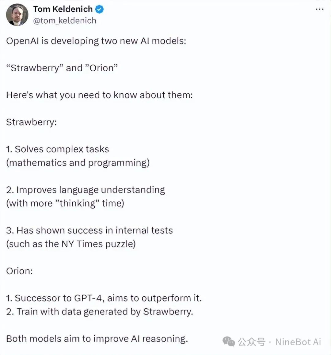 草莓不仅是一个独立的创新,更重要的是,它将为即将推出的下一代模型“猎户座”(Orion)提供数据支持。