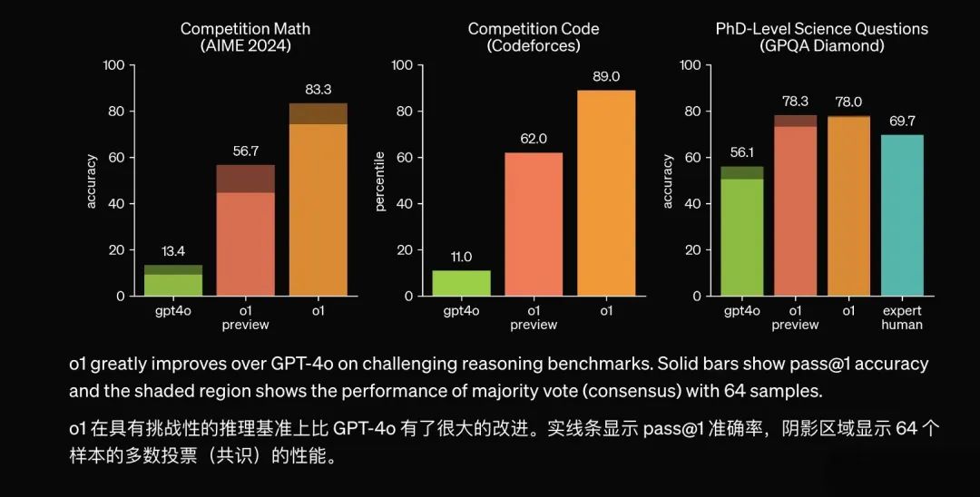 o1 模型在处理复杂问题和多步骤问题方面表现出色,尤其在编写代码、解决数学问题方面,超越了之前的模型。