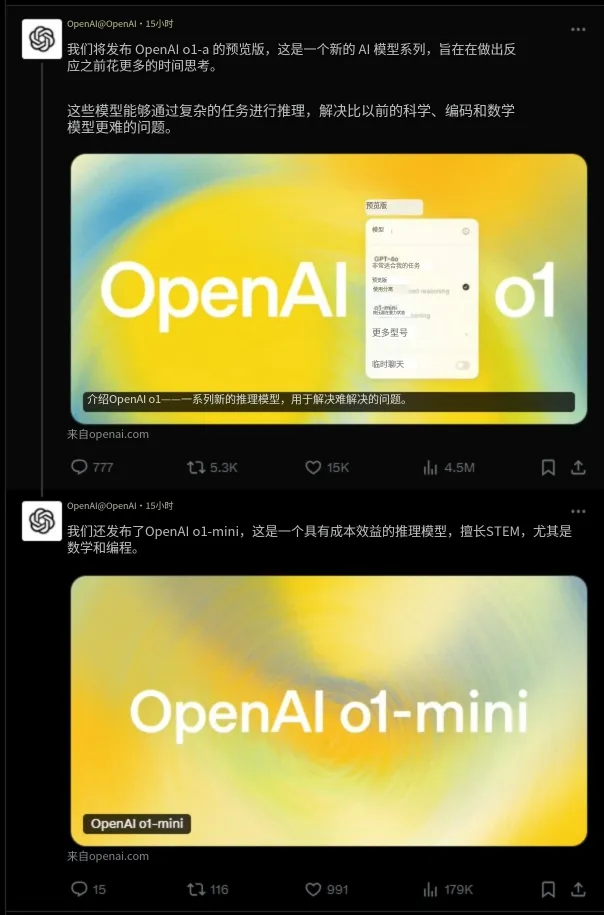 o1-preview(高级推理) 和 o1-mini(更快的推理速度) 两个版本 。