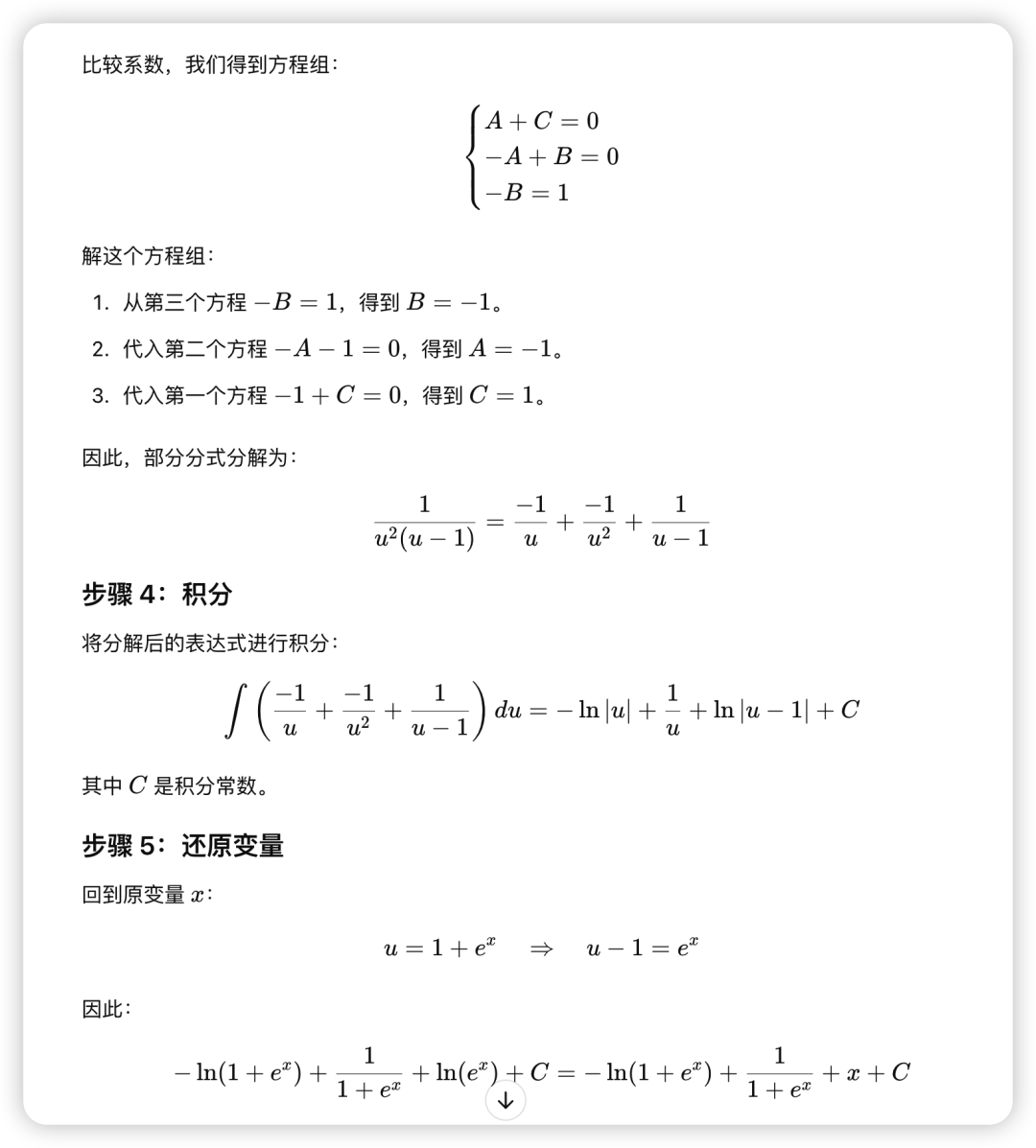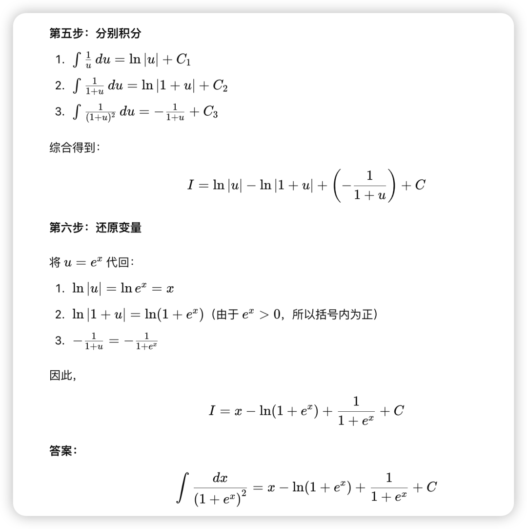 解题步骤用了6步。真的是太强大了。答案完全正确。