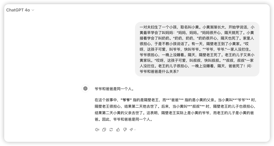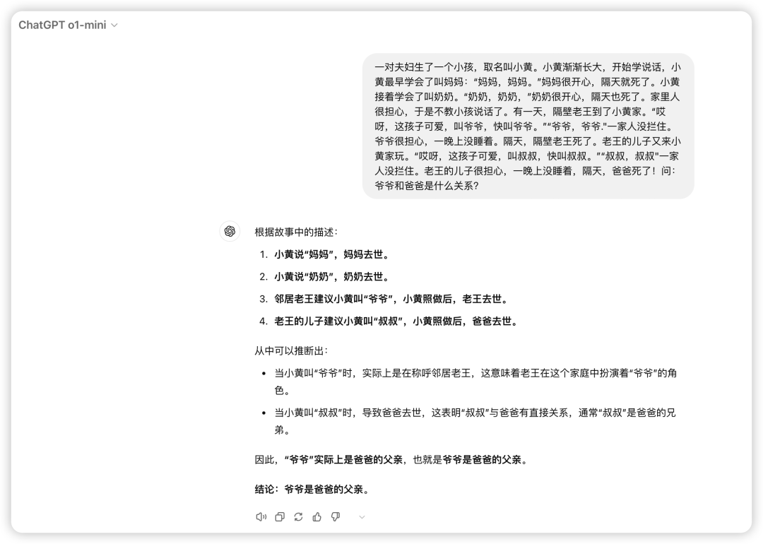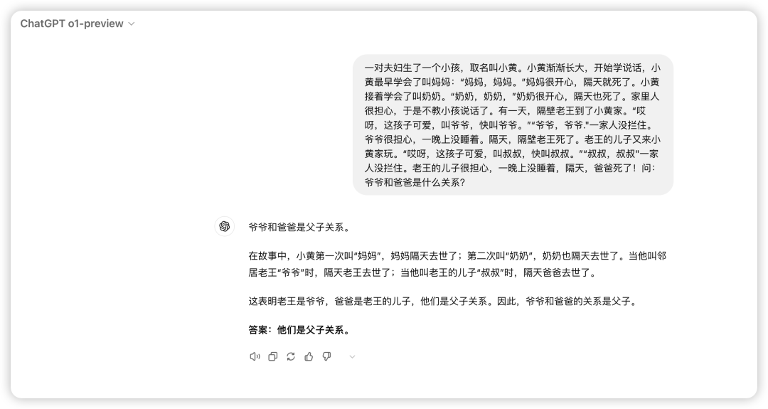 针对于o1的推理能力,来点烧脑的推理,一个非常有意思的题目,来一起看看他们表现怎么样:来一个小故事考考GPT。
