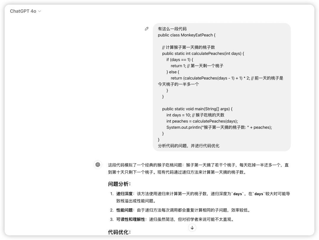 分析代码的问题,并进行代码优化Gpt4o给出了问题分析: