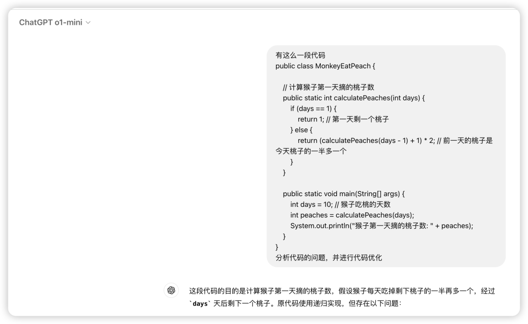 o1-mini 给出了问题分析:递归深度限制:
