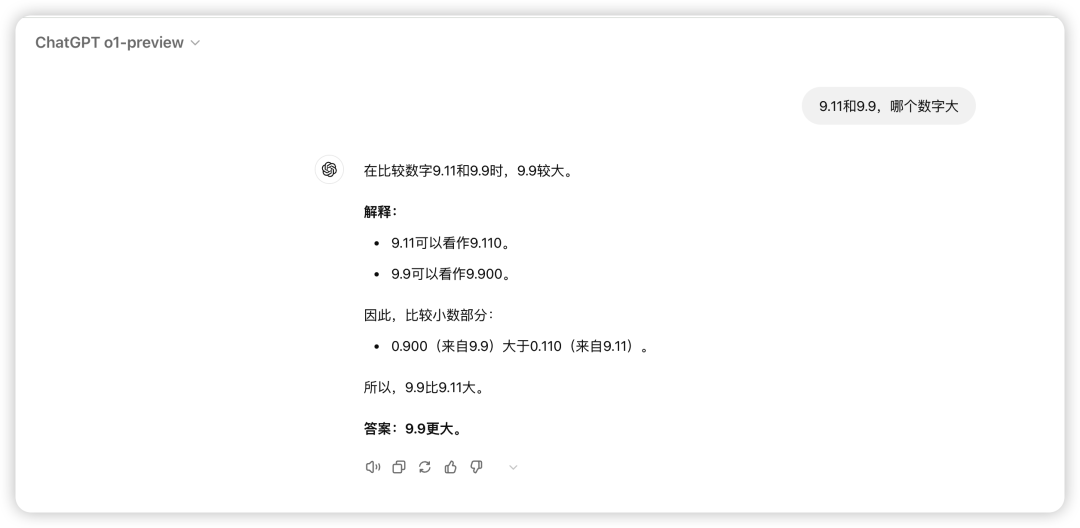 o1-preview(高级推理) 和 o1-mini(更快的推理速度) 终于把这个经典问题回答对了。Gpt4o 解决不了这个问题。