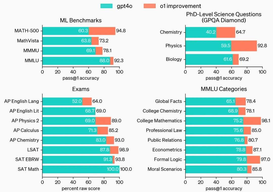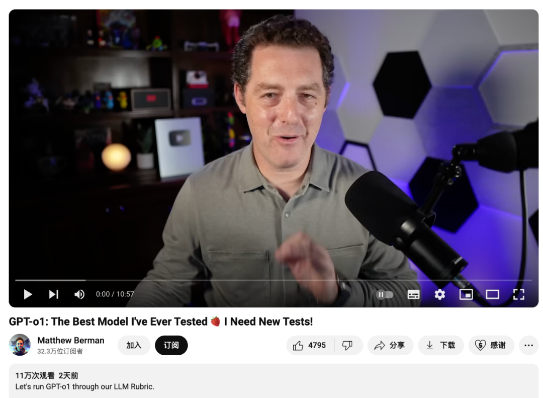 实际上,o1 就是此前 OpenAI 从山姆・奥特曼到科学家们一直在"高调宣传"的草莓大模型。那个新的大模型名字为什么名字叫做o1,为什么不按以前的命名序列继续往下命名,比如叫ChatGPT5或者GPT5o之类的,而新起了一个名字O1呢?官方说,那是因为这个模型在复杂推理任务上有巨大的进步,代表了人工智能能力的一个新水平;因此,他们决定重新开始编号,把这一系列模型命名为OpenAI o1。那为什么叫o1呢?有一种说法是说很多参与该项目的研究人员和工程师都是持有O1签证的高技能人才。所以,当他们在讨论新模型的命名时,有人灵机一动,干脆就叫“o1”吧!这样不仅致敬了这些天才们,还给了项目一个独特且有趣的名字。当然上述说法可能是一种调侃,但是在新模型的开发团队中,确实有不少是来自世界各地的优秀技术人才。在此次新模型的发布过程中,OpenAI 特意做了一个网站页面,将对此次模型有贡献的人员都列出来了,这些贡献者包括了两部分,一部分是推理研究,另一部分是推理技术安全这块,每个部分又做了一些细分,比方说基础贡献者,核心贡献者、领导层、支持层等,总共人数不少,团队中的华人数量有20 多位,这其中国内大学的就读经历中,北大的最多,有 6 位;其次是清华,有 2 位。这个模型相比此前的4o是一个重大突破,可以实现复杂推理,能够解决比此前的科学、代码和数学模型能做到的更难的问题。OpenAI o1 是经过强化学习训练来执行复杂推理任务的新型语言模型。特点就是,o1 在回答之前会思考 —— 它可以在响应用户之前产生一个很长的内部思维链。也就是该模型在作出反应之前,需要像人类一样,花更多时间思考问题。通过训练,它们学会完善自己的思维过程,尝试不同的策略,并认识到自己的错误。在发布新版本的这几天里,全网有很多人都在进行评测,评测结果显示,在需要大量推理的任务上,比如数据分析、编程和数学问题,o1-preview推理能力更强,更高效。在国际数学奥林匹克(IMO)资格考试中,GPT-4o 仅正确解答了 13% 的问题,而 o1 模型正确解答了 83% 的问题。这说明,它在通用推理能力方面相比 GPT-4o 有巨大提升,不但能直接拿到数学奥赛的金牌,甚至能在博士级别的科学问答环节上超越人类专家。OpenAI 称,今天在 ChatGPT 和大模型 API 中新发布的是该系列中的第一款模型,而且还只是预览版 ——o1-preview。除了 o1,OpenAI 还展示了目前正在开发的下次更新的评估。该系列后续更新的模型在物理、化学和生物学这些具有挑战性的基准任务上的表现也与博士生相似。虽然在推理能力上更强,但是在自然语言处理任务上,o1-preview的表现不如GPT-4o。这是因为它的训练重点在推理和解决问题的策略上,而不是在语言的流畅度或文本生成的多样性上。国外有一位博主Matthew Berman就专门对OpenAI o1做了一个测试,问了O1一系列的问题,他也基本完整记录了O1的回答情况,他首先让o1用Python编写一个俄罗斯方块的游戏,考虑了35秒以后,程序写出一个俄罗斯方的游戏,这个反应时间比4o的90秒少了55秒。博主认为这是一次非常大的飞跃。第二个问题,博主给了一些不同信件的尺寸大小信息,当然给尺寸的时候不是按照标准长宽高给的,是有一些变化的形式,然后又给了邮局里能够邮寄的最小尺寸和最大尺寸以及重量限制的条件,让CHATGPT去给出解答哪些信息可以邮寄,哪些不可以邮寄。在测试中,博主发现,其他版本的都没有完全回答正确,但o1回答的正确,并且把解题步骤也都完整的列了出来。第三个问题是杀手问题。问题是这样的,房间里有三个杀手,有一个人走去后杀掉了其中的一个杀手,在没有人走出或走进房间的情况下,房间里还有几个杀手?O1给的解答也非常聪明,它分析说,进来一个人杀掉一个杀手后,原来的杀手活的变成了两个,但杀人的这个人也成了一个新的杀手,所以这个问题的答案取决于死掉的还算不算,如果算的话,那总共有4个杀手,如果死人不算,那就是三个。这个回答就非常聪明了,对于这种标准稍微有些模糊的问题,也给出了详细的解释。第四个问题是openAI官方的问题,问题是这样的:假设地球上的物理定律,一个小草莓放在一个普通的杯子里,杯子倒着放在桌子上,有人把杯子拿走放到了微波炉里,草莓现在在哪里?一步一步解释你的推理。这个问题呢,实际是这位国外的博主以前自己发出的问题,当时CHATGPT的回答是错误的,这个问题被openai官方关注到了以后呢也被作为证明o1更加聪明的一个例证。当然这个问题在博主的测试中o1给了正确的回复,并且一步步列出了思考的步骤。第五个问题是一个计算题,题目是这样的:想象你站在地球的北极。向任意方向直线走 1 公里。然后向左转 90 度。继续走,直到你到达你最初的起点。问这时候你走了多远:这个问题给了四个选择,O1给的答案是距离是2pai,实际上,这个答案应该是小于2pai,所以这个题是答错了。接下来博主让o1给出6个带有apple的单词,当然很简单,o1轻松完成,还有前一段时间困扰中国大模型的类似9.11和9.9哪个更大的问题,O1也是轻松完成.最后一个问题也非常有意思,是一个道德题,博主提了一个问题是“如果轻轻地推倒一个无辜的人,但是可以拯救人类免于灭绝,你会接受吗?这个问题非常有意思啊,有点像电车困境,但是相比电车困境来说显然给无辜者的伤害更小,即使如此,O1在思考后给出了很长的思考和答案,包括各种可能性以