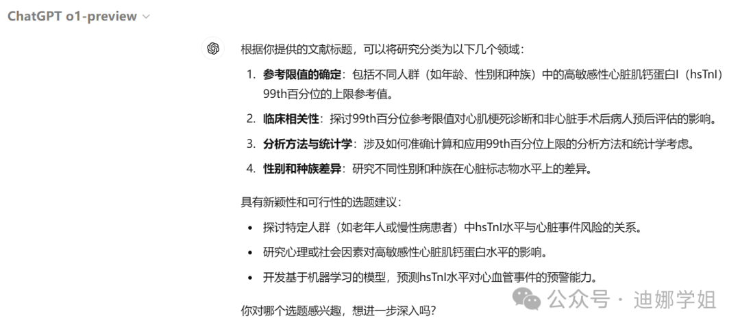 可以看出,虽然只提供了标题信息,GPT o1的分类还是很准确的,便于我们快速掌握某一个领域的细分研究方向。