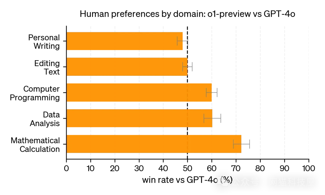 相比于 o1 的推理能力,GPT-4o 在自然语言处理(NLP)方面更具优势。它在处理典型的对话式 AI 任务,比如回答问题、内容摘要或创意文本生成时,速度更快、效率更高。人类专家普遍认为,GPT-4o 在一般的 NLP 任务中更受欢迎,因为它能够更迅速地提供连贯且相关的回应。