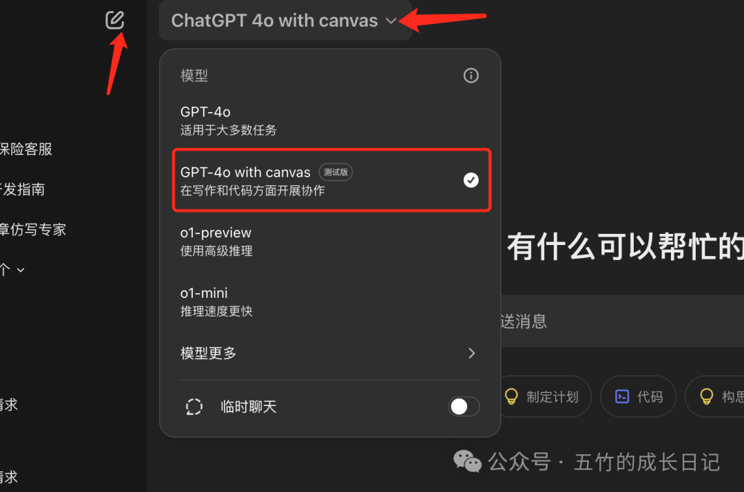 最近一直都在折腾Coze智能体,有段时间没有关注ChatGPT了。没想到它竟然在国庆期间上线了一个Canvas功能。![]()