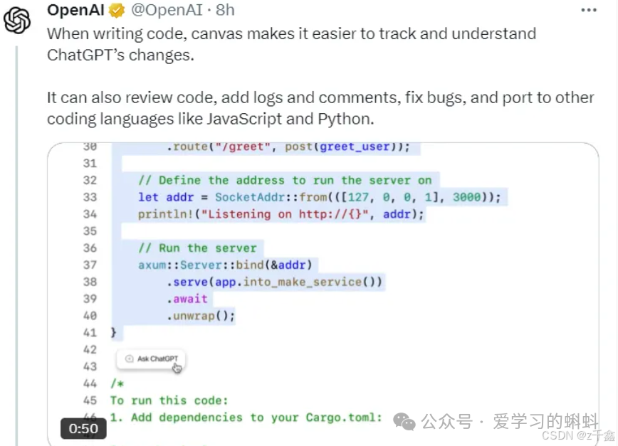 在聊天中,跟踪代码的改进过程往往很困难,而Canvas则让这一过程变得更加透明。用户可以轻松跟踪和理解ChatGPT的修改过程,OpenAI承诺将继续提升这类编辑过程的透明度。