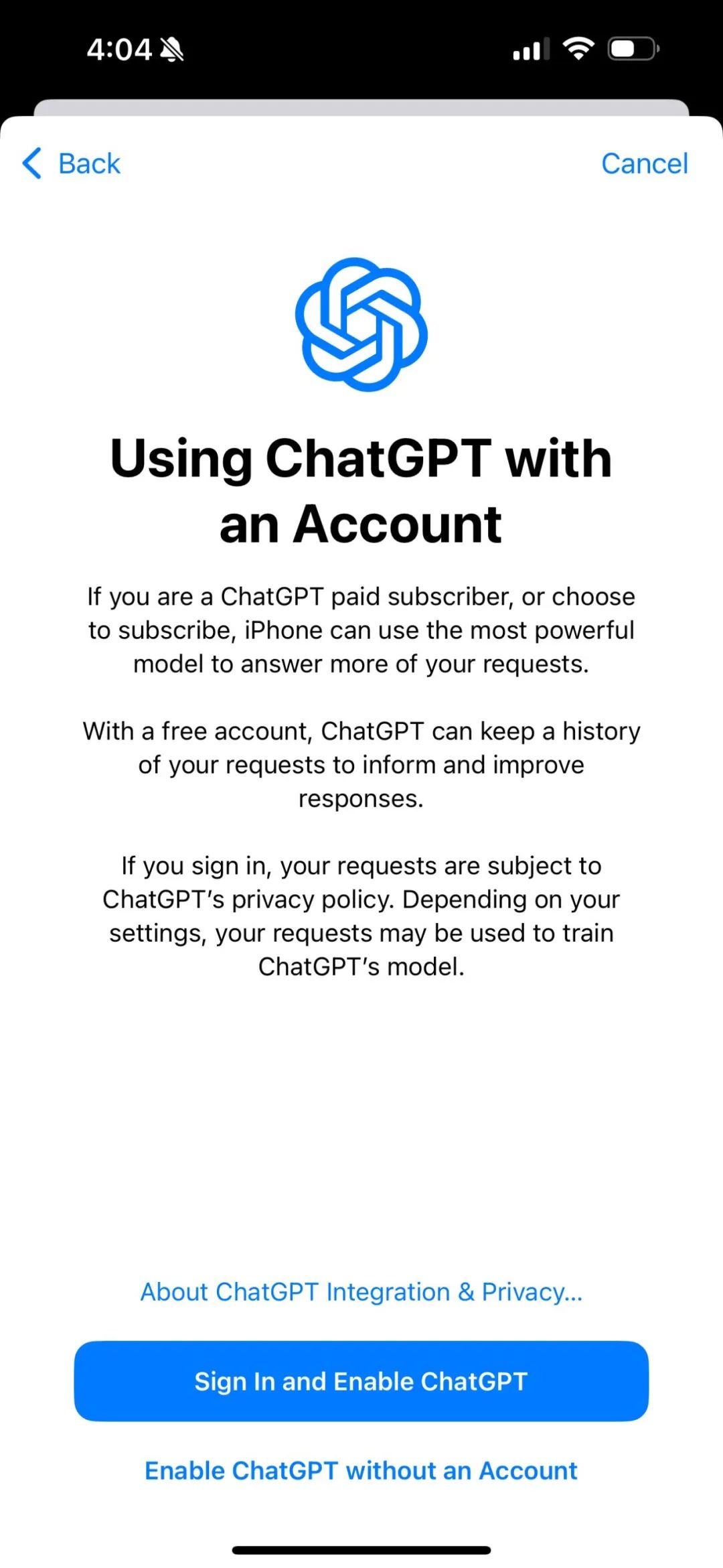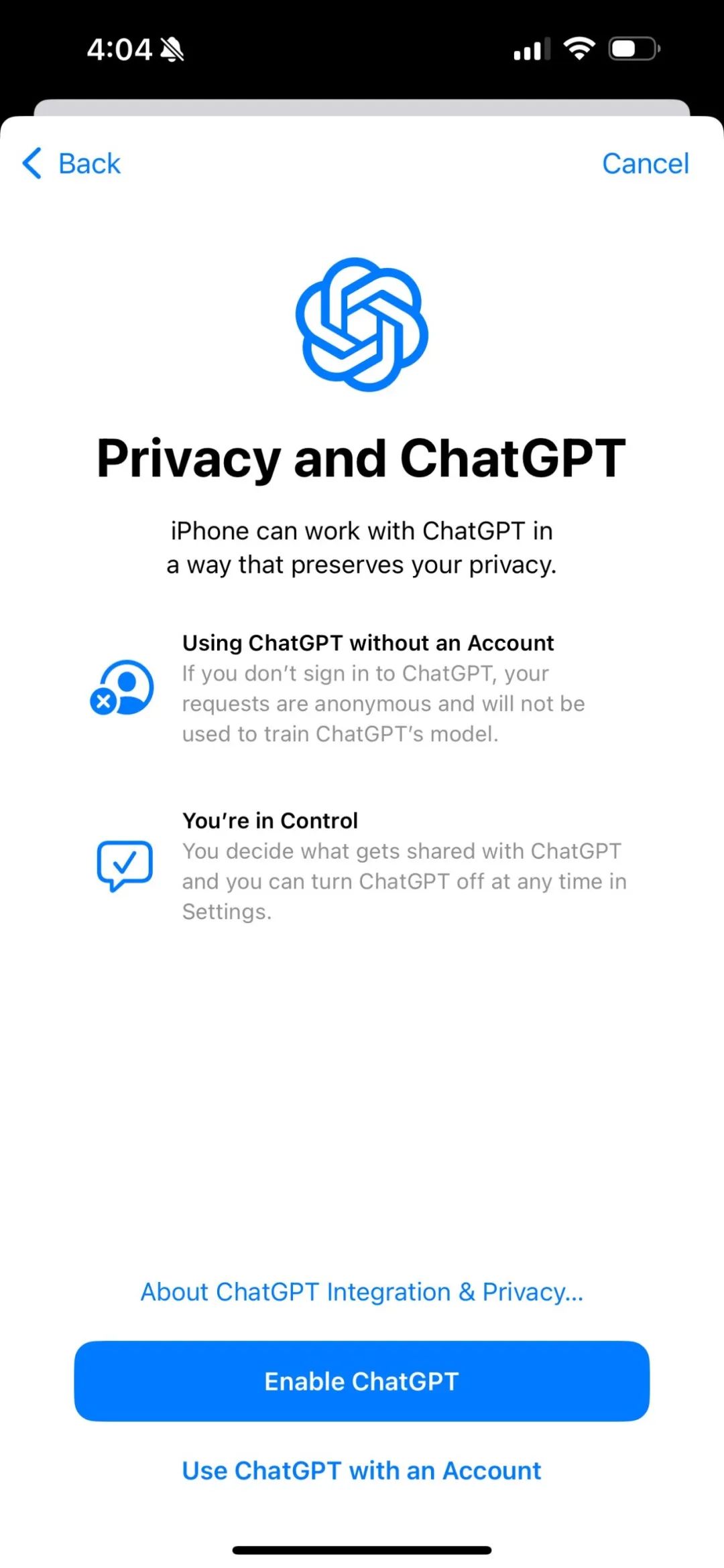 这项功能的亮点在于,即使你不需要 OpenAI 账户,也可以使用 ChatGPT,并且苹果和 OpenAI 都不会存储用户的请求数据,极大地保护了用户隐私。