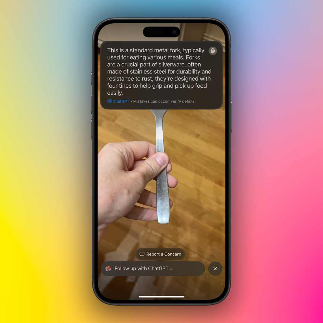 物品信息查询:对准商品后,Visual Intelligence 能与 ChatGPT 协作,为你提供深入的商品信息,甚至指导你在哪里购买