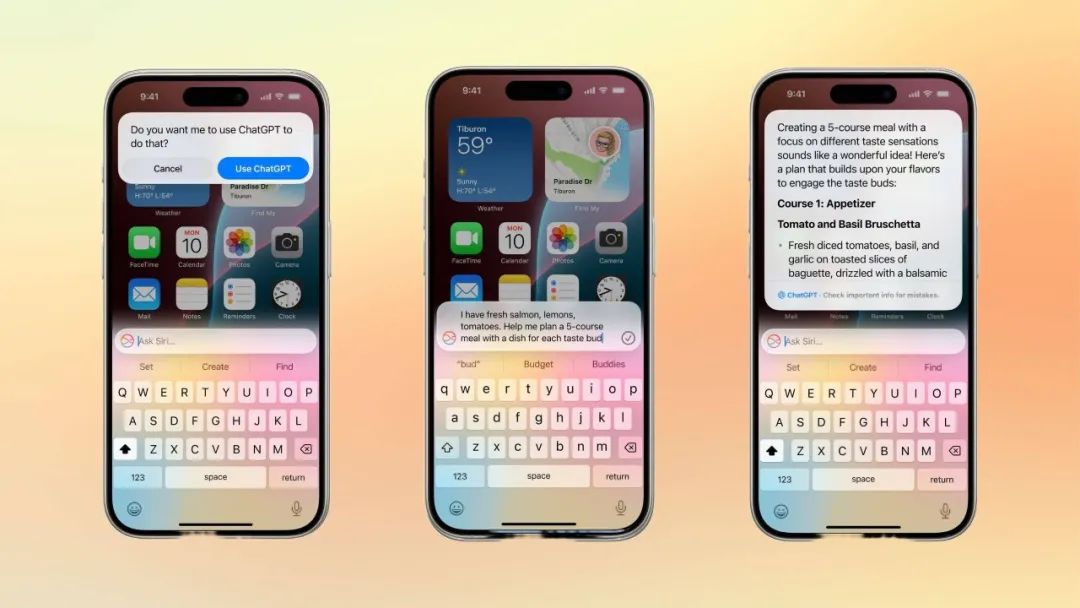 这为 Siri 增加了更强大的生成式 AI 支持,尤其是在 Siri 无法提供确切答案时。此外用户现在可以通过简单的语音指令,如“Ask ChatGPT”,直接将查询交给 ChatGPT 处理,而不必依赖 Siri 的内置知识库。
