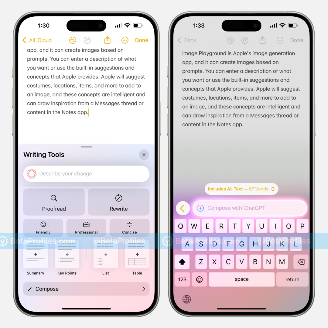 iOS 18.2 对写作工具也进行了增强。在 iOS 18.1 中,写作工具只能将文本调整为友好、专业或简明的语气。而现在,用户可以通过描述所需的语气或内容变化来更灵活地编辑文本。