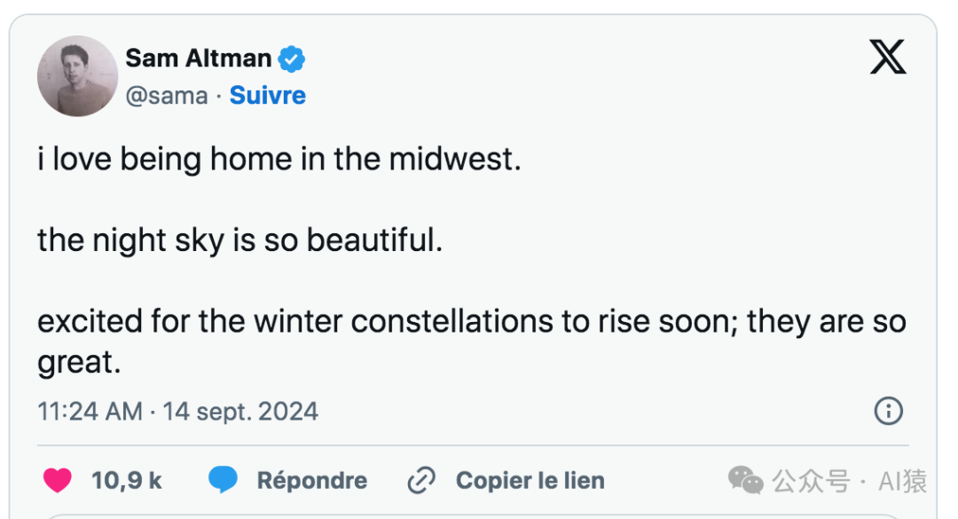 大约在这个时候,首席执行官 Sam Altman 在 X 上发布了一条关于美国中西部冬季星座的有趣信息。