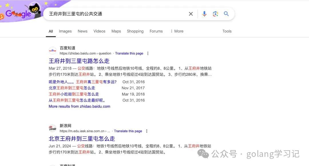 比如问它,王府井到三里屯的公共交通?ChatGPT search 也很快给出了清晰有用的答案。