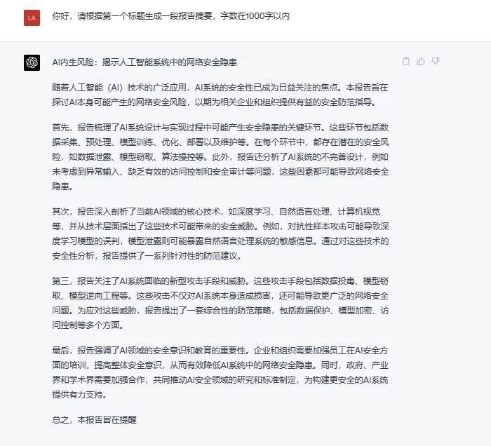 4月26日,FreeBuf咨询发布了一篇名为“我们用ChatGPT写了一份AI安全报告”(点击阅读)的文章,很多读者留言希望我们可以分享是如何做到的,所以有了今天这篇文章。