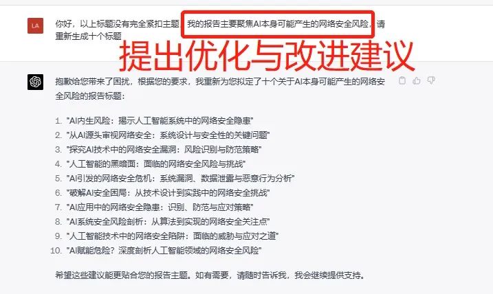 结合实际情况,我们需引导ChatGPT对生成的标题进行调整与优化,使最终报告的选题更加贴合实际需求、更有针对性。