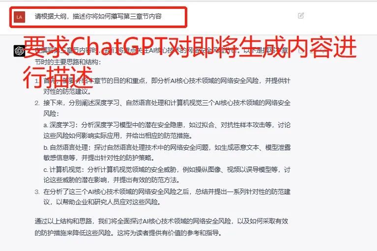 以第三章节内容为例,我们首先要求ChatGPT对即将生成的内容进行描述。
