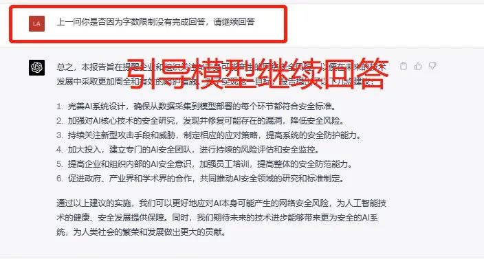 好在,因字数限制而中断的回答可在引导下继续输出结果。进行这一操作时需注意评估此前生成内容中断的位置,以大致判断遗漏内容所占比例,若中断位置接近尾声,将有较高的成功率使模型继续回答。