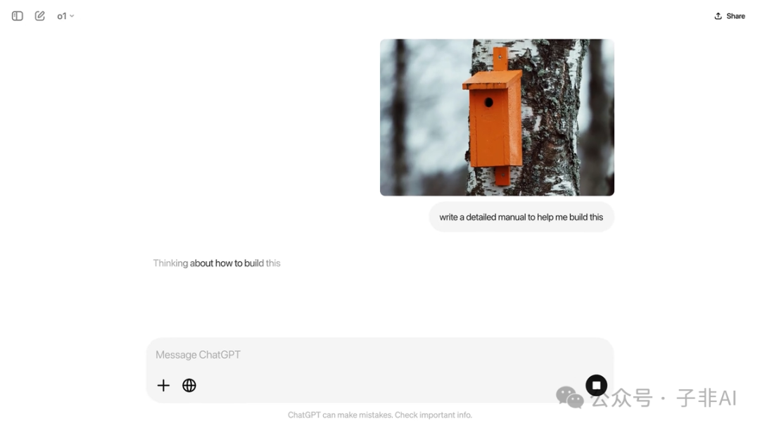 • 响应速度更快: o1 模型经过优化,思维更简洁,响应速度比预览版提升了约 50%,更接近用户的实时交互体验。这对于需要快速获取答案的用户来说是一个巨大的优势。 • 错误率更低: OpenAI 内部测试表明,o1 模型在“现实世界难题”上的“重大错误”减少了 34%,这意味着 o1 模型的答案更加可靠。 • 支持图片输入: o1 模型现在可以接受图片作为输入,并进行“推理”分析,这拓展了 o1 模型的应用场景,使其能够处理更丰富的信息类型。 • 即将支持网页浏览和文件上传功能: 未来,o1 模型将支持访问互联网信息和处理本地文件,这将进一步提升 o1 模型的实用性和价值,使其成为更强大的 AI 助手。