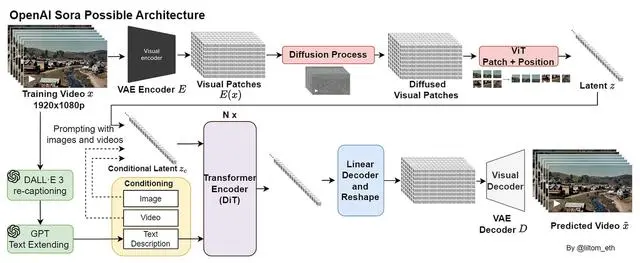 补丁是训练处理各种类型和视频和图像的生成式模型时一种高度可扩展且有效的表示方法。将视频转换为补丁的过程是,首先将视频压缩到低维潜在空间,然后将其表示分解为时空补丁。