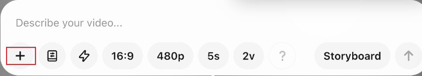 首先,我们可以在屏幕底部的输入字段中输入文字来描述我们的视频,包括sora提示词等,或者在初始提示中上传图片或视频文件。