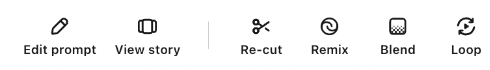如果我们对我们生成的视频不满意,将鼠标悬停在预览的视频,此次sora给我们提供了一个修改和编辑的功能,有点类似剪映