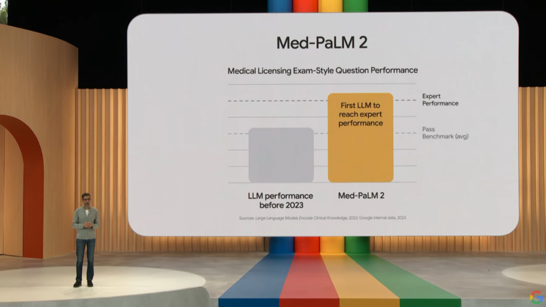 皮查伊在会上展示了 Med-PaLM 2 的医疗内容生成效果。![]()