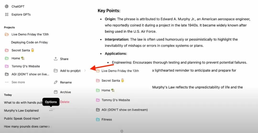 Projects 不仅适用于定制化对话,还可以单纯用于整理和归类对话记录,让工作流程更加清晰