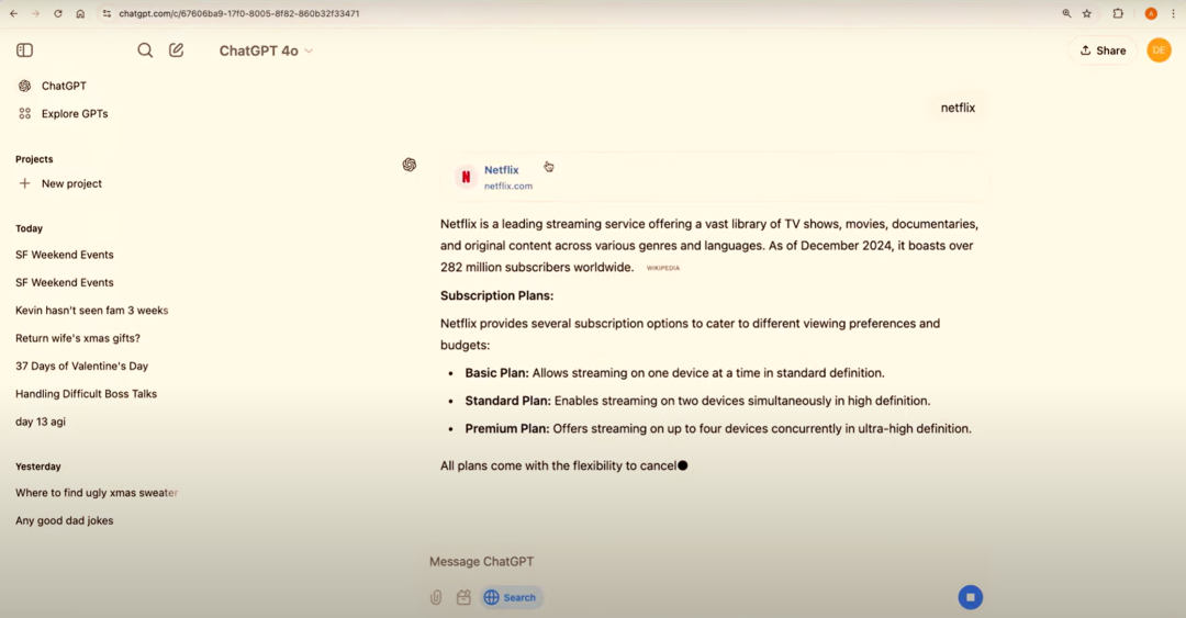 OpenAI 推出了一个新功能,即在聊天中集成搜索。用户现在可以在对话中直接进行搜索,无需切换到传统的搜索引擎。