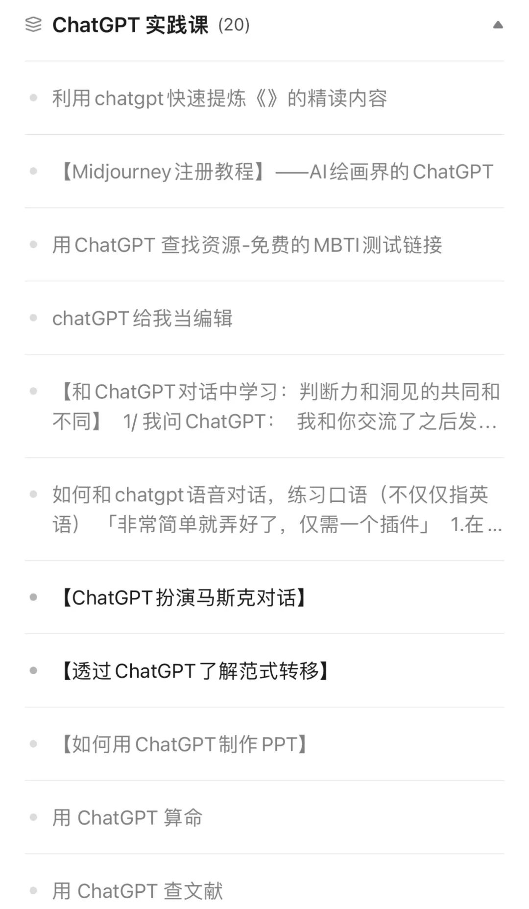 你可以和ChatGPT说,我参加了 100天写作,但今天没思路,你丢10个选题给我,你很快就有可以写的了,完全不愁写不了。