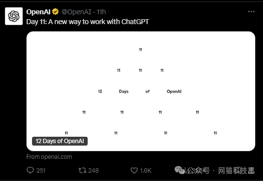 2024年12月20日凌晨,OpenAI在“12天发布季”第11天的直播中宣布了对ChatGPT应用程序的重磅升级,正式迈入原生应用程序自动化协作的领域。