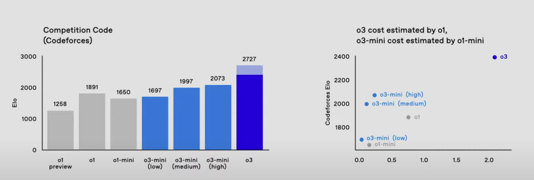 o3模型有几个形态,除了o3,还有o3 mini,应该是蒸馏出来的小模型,mini版本也分为三种类型,分类的标准是推理消耗的计算资源。