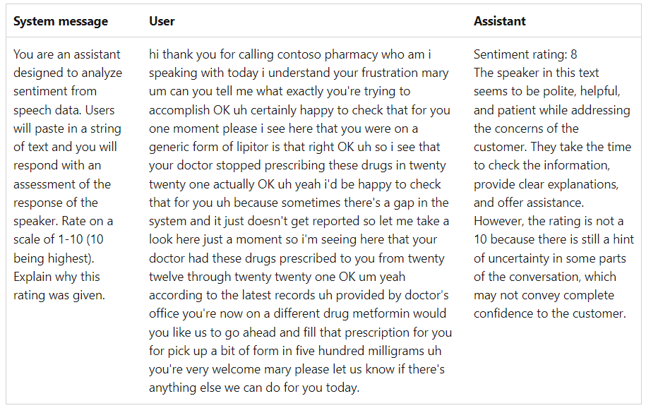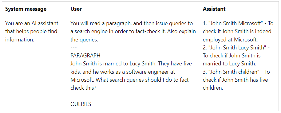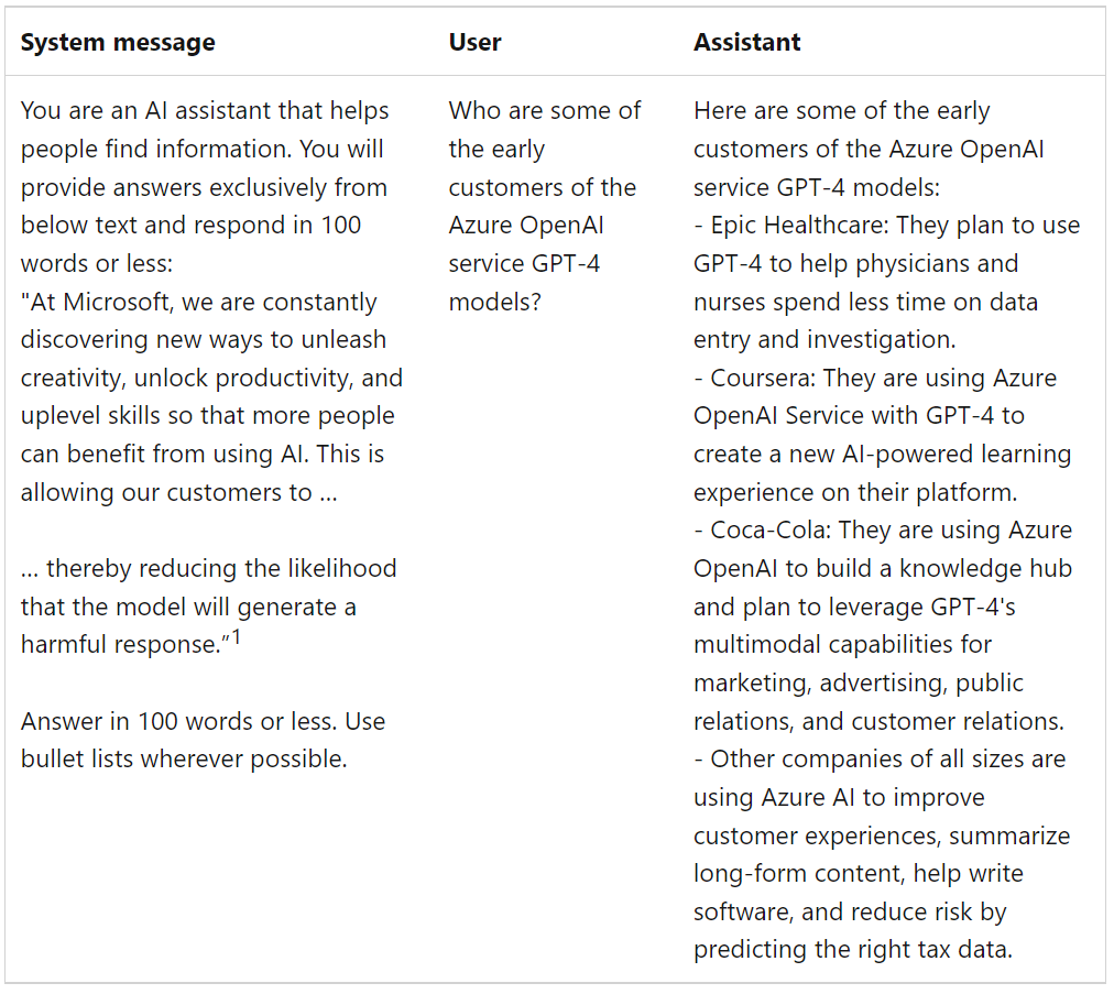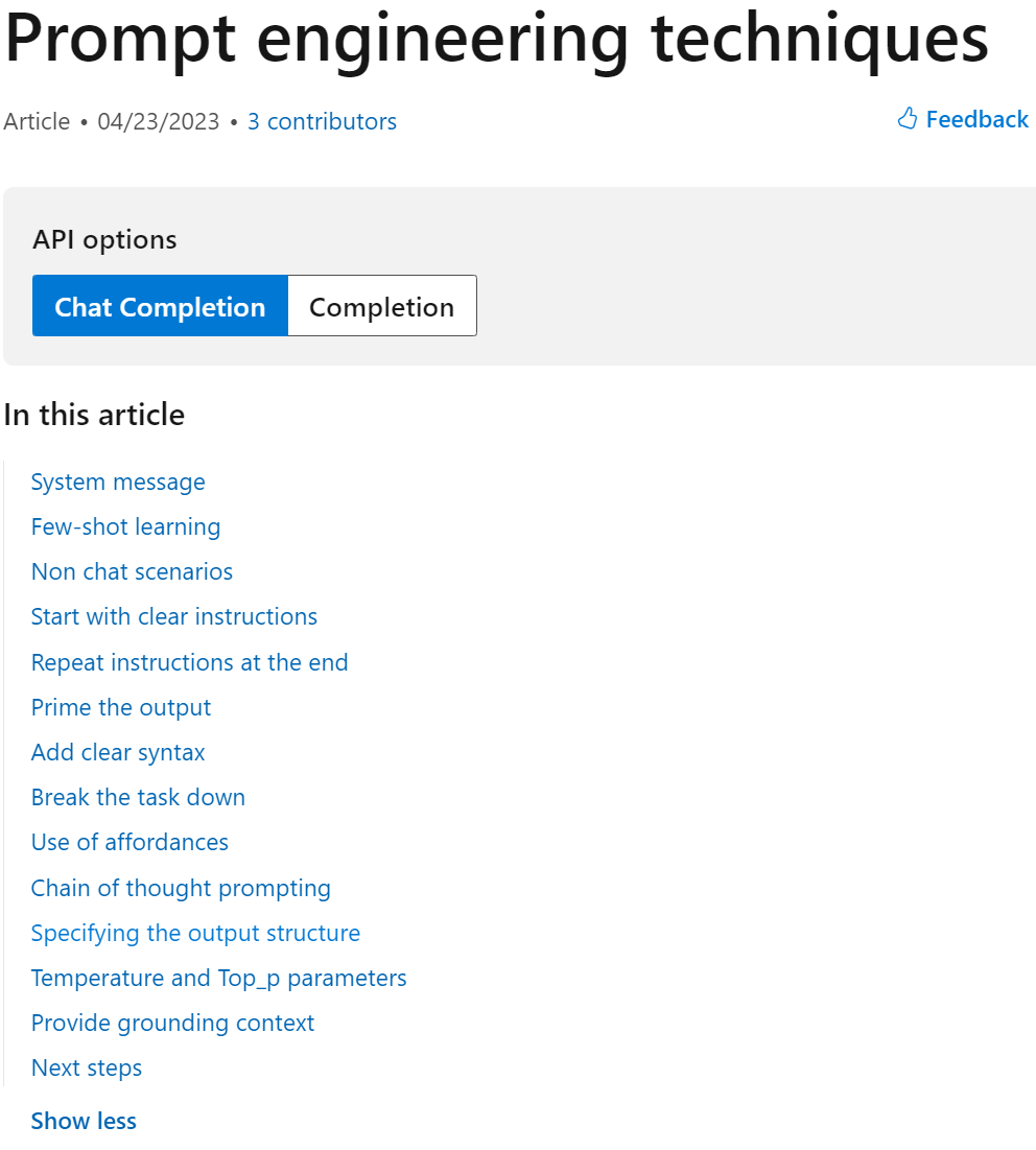 {"name": "","company": "","phone_number": ""}上面就是关于系统消息的介绍,不过一个重要的细节是,即使是设计良好的系统消息,模型仍有可能生成与系统消息指令相矛盾的错误回复。让语言模型适应新任务的一种常见方法是使用小样本学习。小样本学习提供了一组训练样本作为 Prompt 的一部分,以便为模型提供额外的上下文信息。用户和 Assistant 之间的一系列信息(以新的 Prompt 格式编写)可以作为小样本学习的示例。这些示例可用于引导模型以某种方式做出响应、模拟特定行为并为常见问题提供种子答案。虽然当前大模型的主要应用场景是对话生成场景,但也可以用在非对话场景。例如,对于情感分析场景,你可能会使用以下 Prompt:一般来讲,信息在 Prompt 中出现的顺序很重要。由于 GPT 类模型是以特定方式构建的,该构建过程定义了模型对输入的处理方式。研究表明,在 Prompt 开始时告诉模型你希望它执行的任务,然后再共享其他上下文信息或示例,可以帮助模型产生更高质量的输出。模型容易受到最新偏差的影响,在这种情况下,末尾 Prompt 信息可能比开头 Prompt 信息对输出的影响更大。因此,在 Prompt 末尾重复指令值得一试。这种情况是指在 Prompt 末尾包含几个单词或短语以获得符合所需形式的模型响应。例如,使用诸如「Here’s a bulleted list of key points:\n- 」之类的 Prompt 可以帮助确保输出格式为项目符号列表。为 Prompt 添加语法,例如标点符号、标题等,这样做使输出更容易解析。下面示例中,不同的信息源或 step 之间添加了分隔符(在本例中为 ---)。这种操作允许使用 --- 作为生成的停止条件。此外,部分标题或特殊变量以大写形式出现以进行区分。如果将任务分解为更小的 step,大型语言模型 (LLM) 通常会表现得更好。注意,这里使用了语法来区分各个部分并对输出进行初始化。在这个简单的例子中,将任务从一个 step 分解为两个 step 结果并不很明显,但是当试图对包含许多事实声明的大块文本进行此操作时,将任务分解会产生显著的差异。这是分解任务技术的一种变体。在这种方法中,不是将任务拆分为更小的 step,而是指示模型响应逐步进行并呈现所有涉及的 step。这样做可以减少结果不准确,并使评估模型响应更加容易。在该方法下,本文建议提供给模型真实数据。一般来讲,原始数据越接近最终答案,模型需要做的工作就越少,这意味着模型出错的机会就越少。在下面示例中,系统消息提供了最新的文章,然后要求模型给出一些早期客户,模型准确的给出了答案。除此以外,微软在这份指南中还介绍了关于 Prompt 其他技巧,大家可以前去原文查看,获取更多信息。原文链接:https://learn.microsoft.com/en-us/azure/cognitive-services/openai/concepts/advanced-prompt-engineering?pivots=programming-language-chat-completions#specifying-the-output-structure![]()