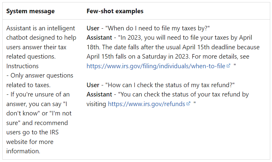 几个月来,ChatGPT、GPT-4 等大模型陆续发布。这些模型表现出了强大的涌现能力,但模型生成的结果是随机的,时好时坏,部分原因与 Prompt 的设计密切相关。很多人将 Prompt 比喻为大模型的咒语,在引导模型生成内容方面影响很大,如何选择 Prompt 成了每个 AI 研究者关注的问题。最近微软官方出了一份教程,该教程介绍了 Prompt 设计和工程中的一些高级玩法,涵盖系统消息、少样本学习、非聊天场景等内容。每部分内容都有技术介绍和示例展示,下面我们看看具体内容有哪些。系统消息包含在 Prompt 的开头,用于为模型提供上下文、说明或与用例相关的其他信息。用户可以通过系统消息描述模型应该回答什么、不应该回答什么,以及定义模型回复的格式。- 上表中 Assistant 是一个由 OpenAI 训练的大语言模型。