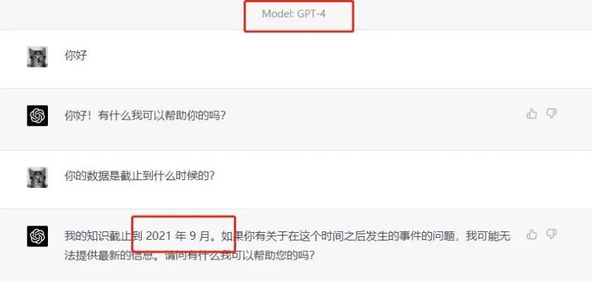 不论是官网3.5还是4.0版本,目前ChatGPT知识数据都截止到2021年9月份,还未能实现联网获取实时信息数据。