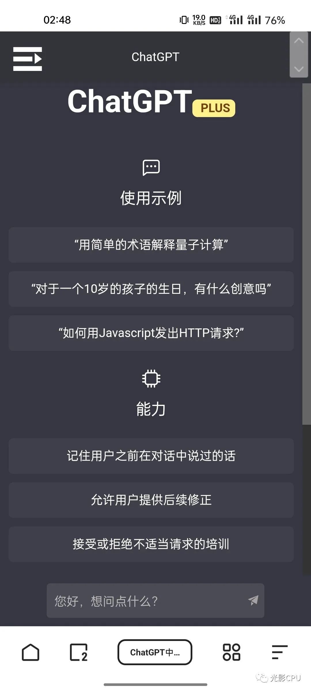 推荐使用GPT中文版,国内可直接访问:https://ai.gpt86.top