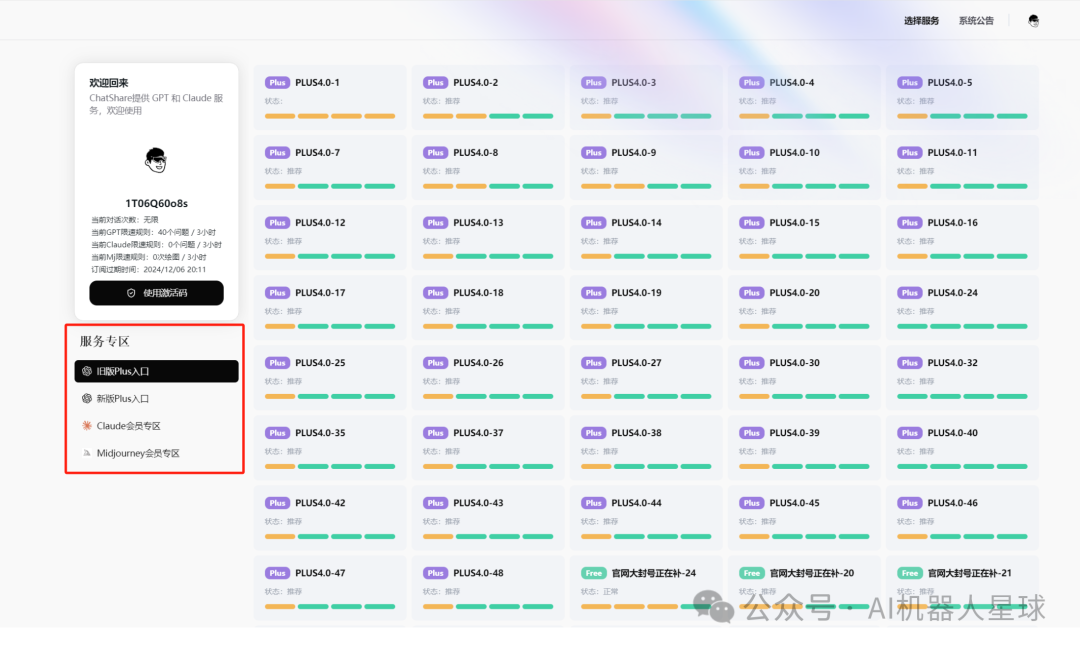 系统提供上百个官方Plus账号供用户选择,即使某个账号出现问题,用户也可以立即切换到其他账号,确保服务不中断。