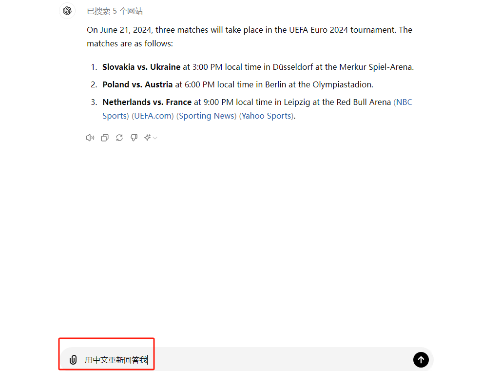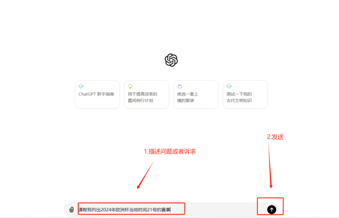4、开始对话:进入主界面后,输入问题并点击发送,ChatGPT将立即生成回答。