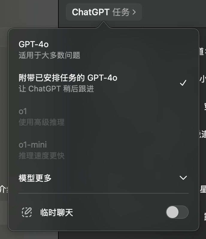 自2024年11月以来,OpenAI即将推出智能体的消息不断传出,甚至有报道指出其计划在2025年1月正式上线,这一消息在最近得到了进一步佐证——OpenAI推出了ChatGPT的“任务模式(Tasks)”,这一功能在macOS、iOS和Android的最新版本中已经上线(Windows版本尚未更新),新增了GPT-4o Tasks模型。