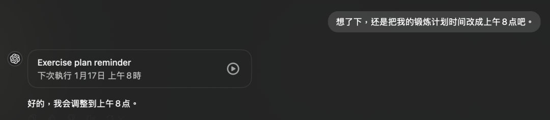 在“任务模式”下,ChatGPT虽然不再支持图片、文档等文件的处理,但保留了始终联网的能力,并新增了“执行计划任务”的功能,表面上看,这一模式似乎只是增加了定时提醒和回答问题的能力,例如每天早上提醒用户锻炼,或每周五发送新闻周报,其本质意义在于,ChatGPT正从被动的聊天机器人逐渐转变为能够主动执行任务的数字助手。