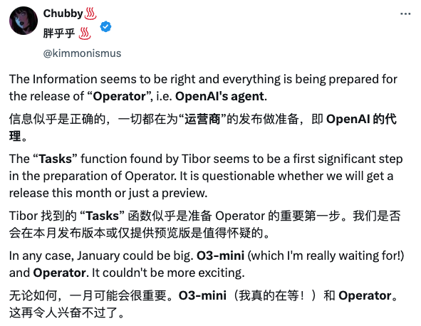 用户 @kimmonismus 就表示:“看起来信息是准确的,这一切似乎都是在为‘Operator’的推出做准备。”