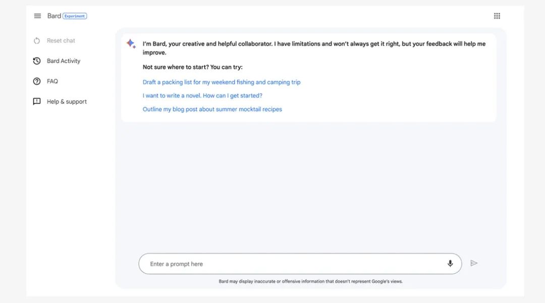 Bard 是 Google 的实验性对话式 AI 聊天服务。宣布后一个多月,谷歌于 2023 年 3 月 21 日为其聊天机器人开放了候补名单,并于 2023 年 5 月 10 日宣布对外全线开放。与此列表中的大多数聊天机器人不同,谷歌并没有使用 GPT 系列中的大型语言模型,而是使用了谷歌制作的模型 LaMDA 的轻量级版本,最新更改为了 PaLM 2。我们访问了该机器人,并在测试后发现聊天机器人的编码能力和作为搜索引擎的功能并不是聊天机器人的强项。然而,聊天机器人作为文本助手表现出色,可以编辑文本和编写专业文档,包括简历、求职信、专业摘要等。另一个主要好处是 Google Bard 可以免费使用,因此如果您在紧要关头需要简历或论文帮助,它可能是一个很好的资源。![]()