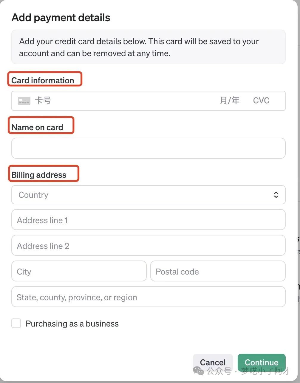 2、注意正确填写信息,卡片信息和账单地址是分开的。