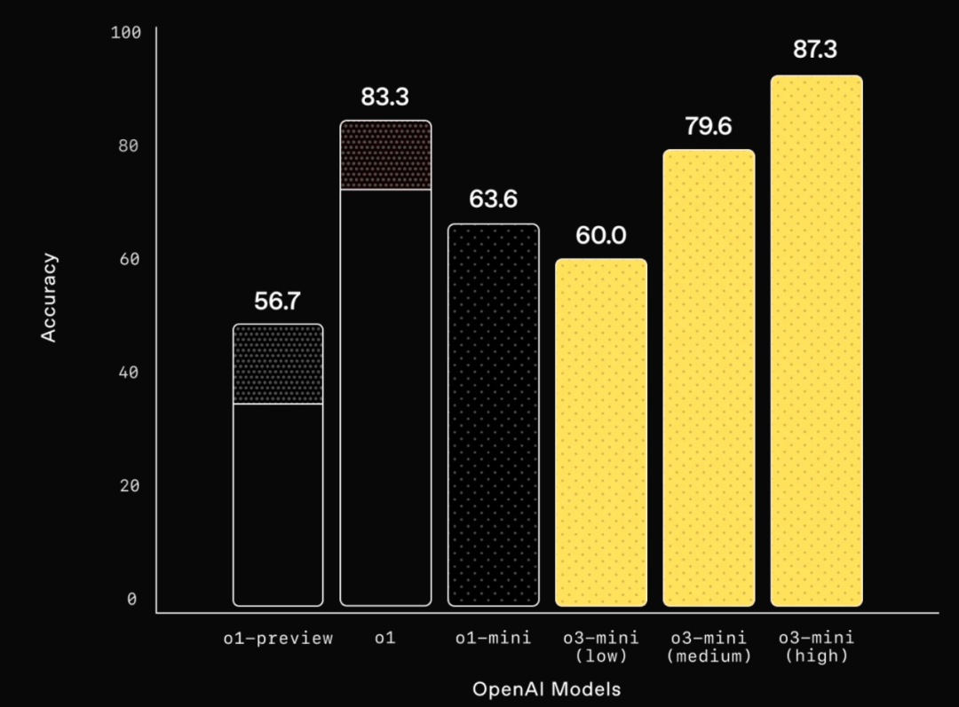 • 卓越的 STEM 能力: o3-mini 在科学、数学和编程方面表现出色,超越之前的 o1-mini 模型,同时还保持了低成本和低延迟的优势