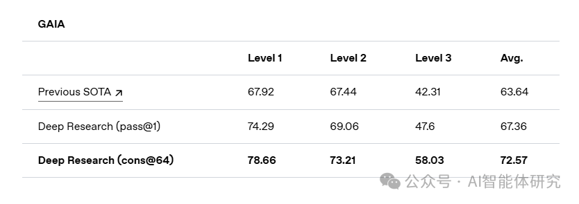 在GAIA基准测试中,Deep Research同样刷新了最先进水平(SOTA),在推理、多模态处理和工具使用能力上表现优异。模型通过多步骤任务规划和实时调整策略,成功完成了多个高难度任务,进一步验证了其在现实问题中的应用潜力。
